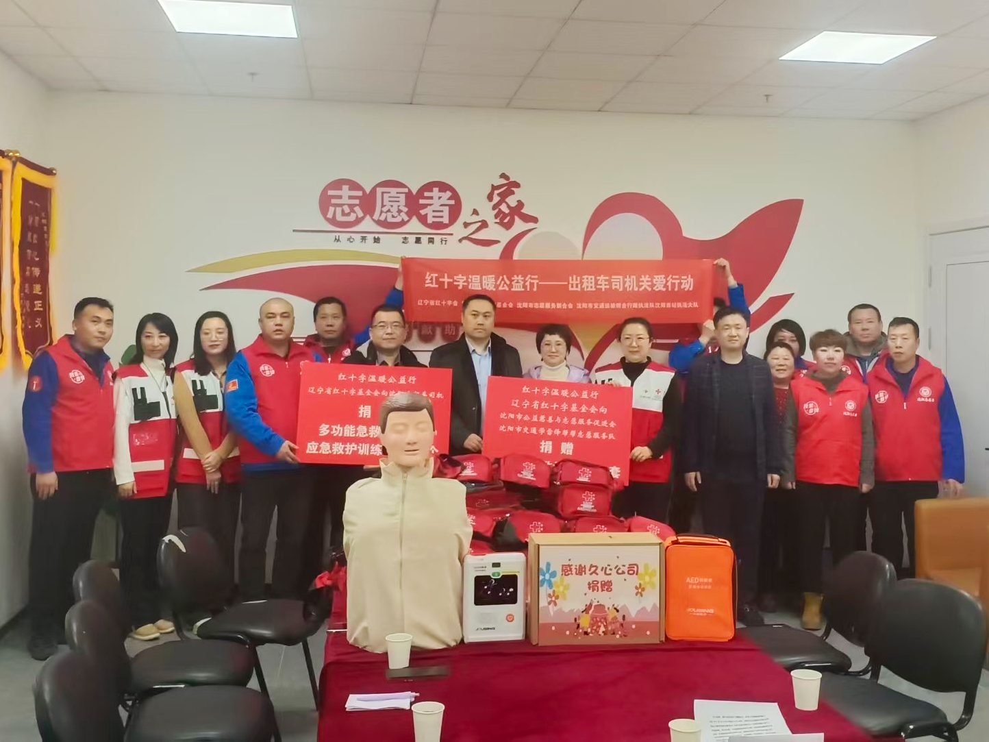 “红十字温暖公益行”向沈阳市交通学雷锋帮帮志愿服务队捐赠应急救护物资